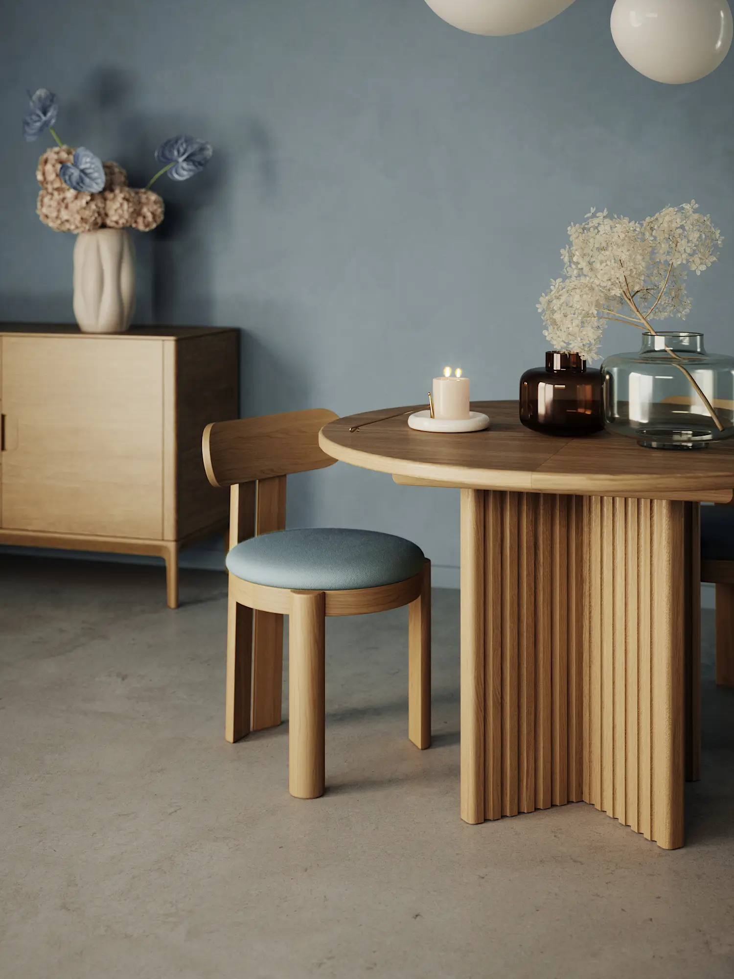 Highlighting small-batch oak tables on social media and the website by moving away from the standard beige arrangements typical of the furniture industry. Showing that handmade furniture can shine in bold, expressive interiors.